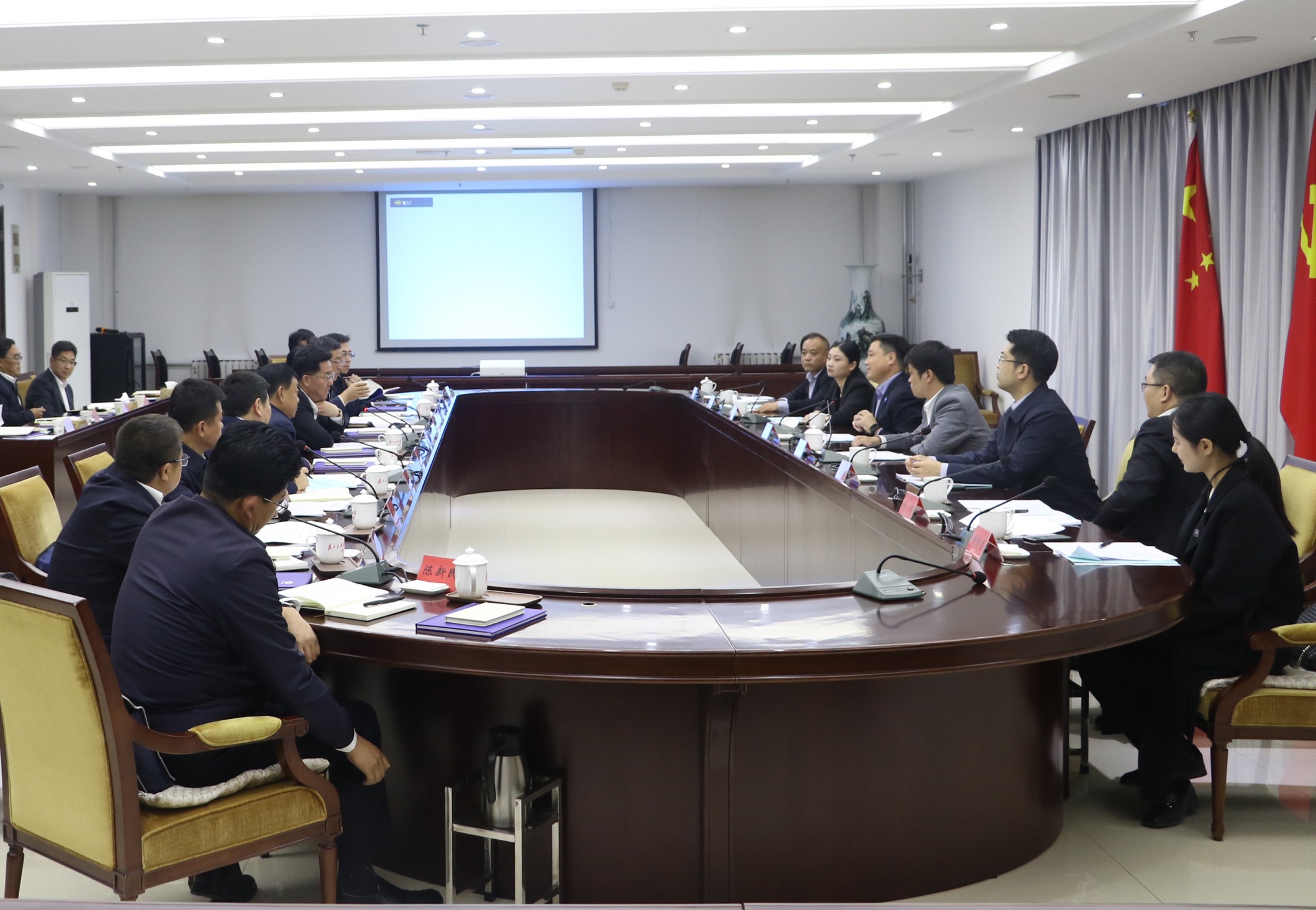 10月13日,严昊主席与甘肃省定西市委书记戴超会谈,双方就定西市基础设施建设及后续合作事宜进行深入交流。定西市委副书记、市长汪尚学,市委常委、常务副市长高永平出席会谈。